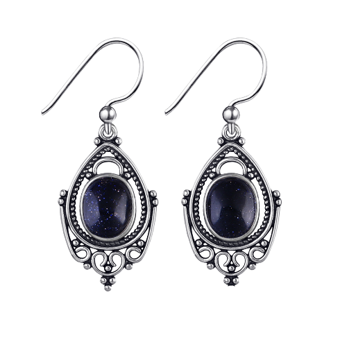 925 Sterling Silver Hand Crafted Blue Goldstone Drop Dangle Earrings