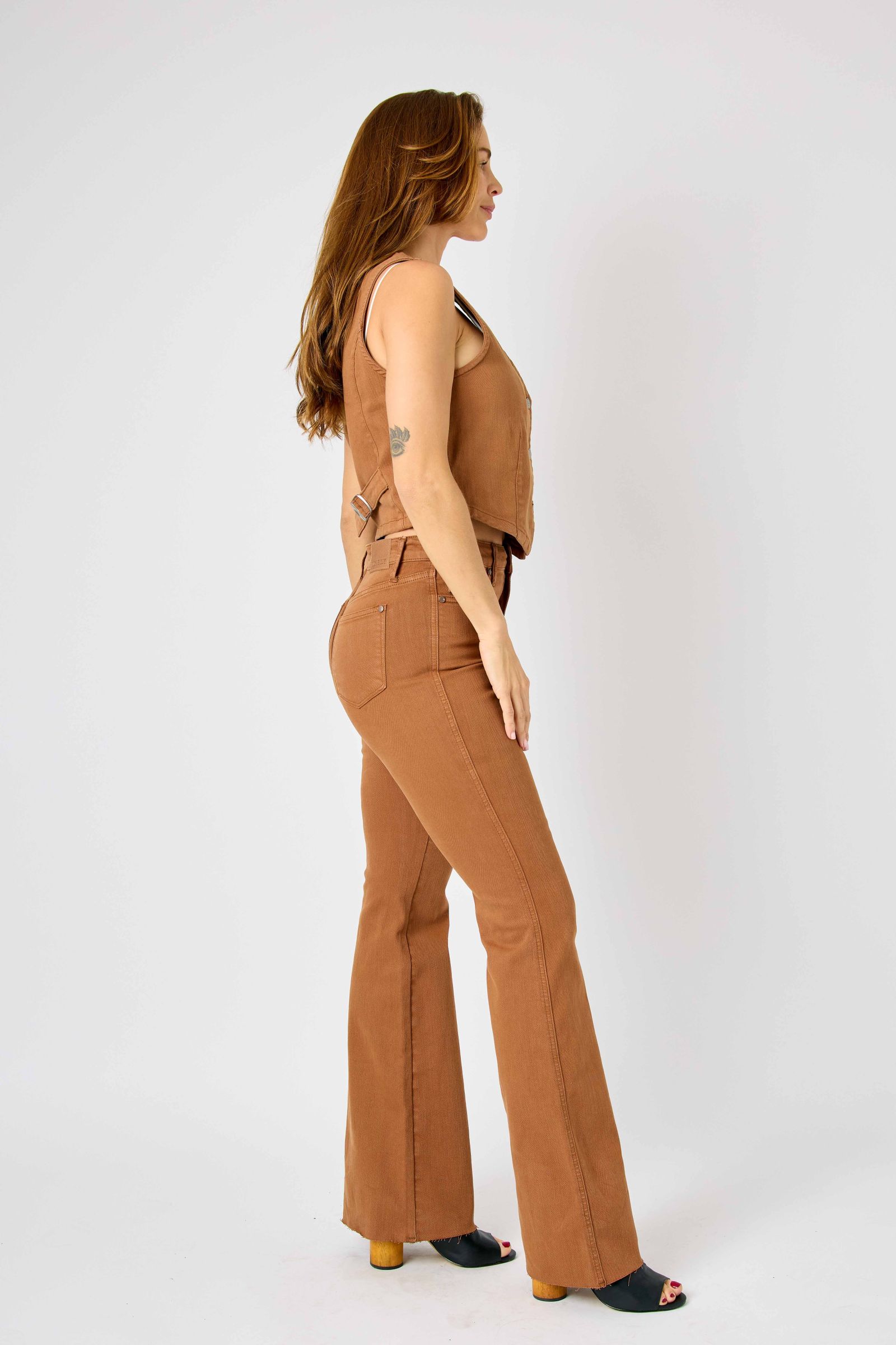 HIGH WAIST TUMMY CONTROL GARMENT DYED BROWN FLARE