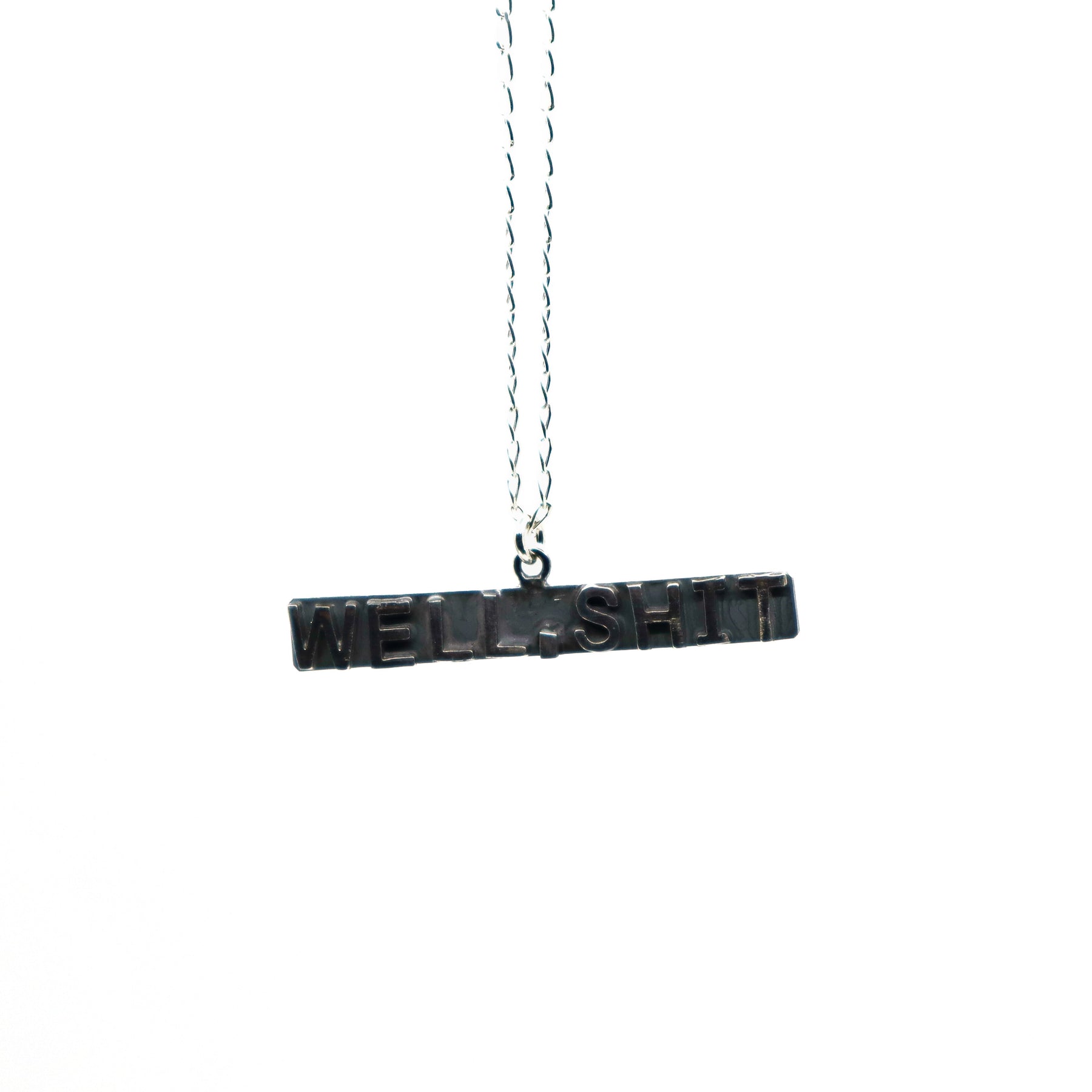 Handmade sterling silver necklace with "WELL, SHIT" pendant