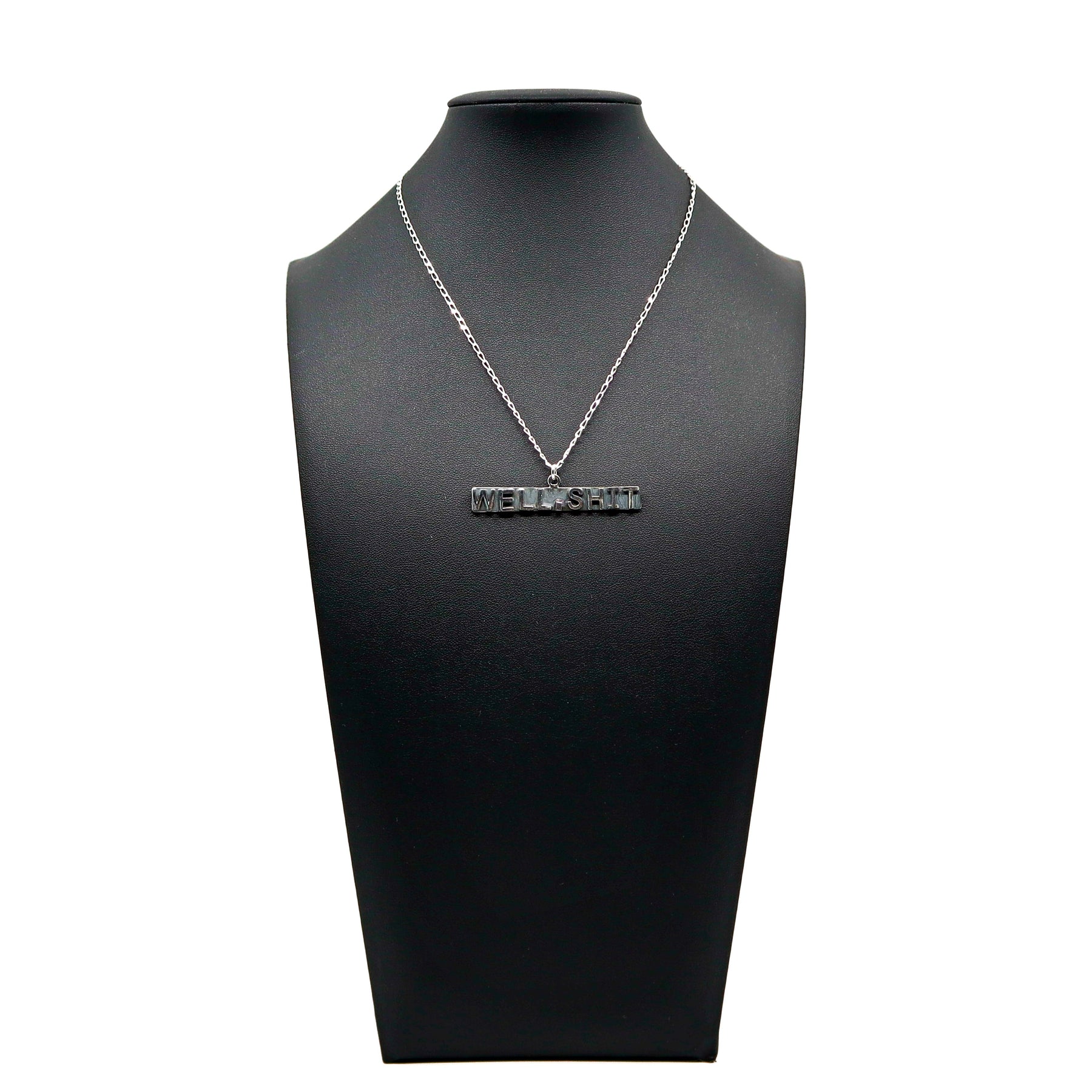 Handmade sterling silver necklace with "Well, S***" pendant on display bust