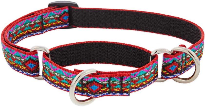 3/4in El Paso 14-20in adjustable martingale dog collar with colorful geometric pattern and durable metal rings