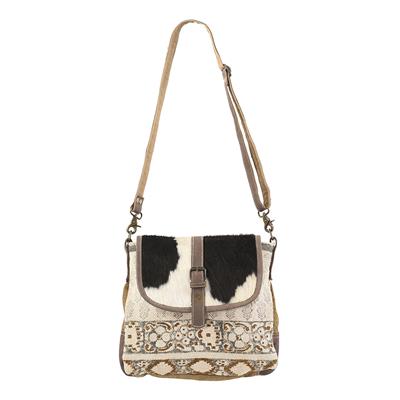 Real Cowhide Leather and Upcycled Canvas Ladies Bag 11 x 13