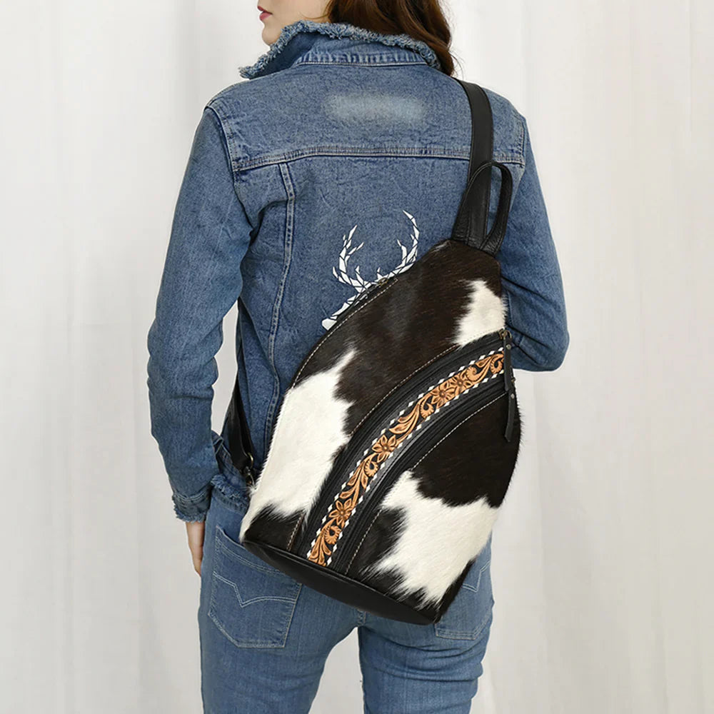 The handpicked cowhide hair-on genuine leather not only adds a soft and tactile element but also serves as an embellishment, enhancing its overall western appearance.