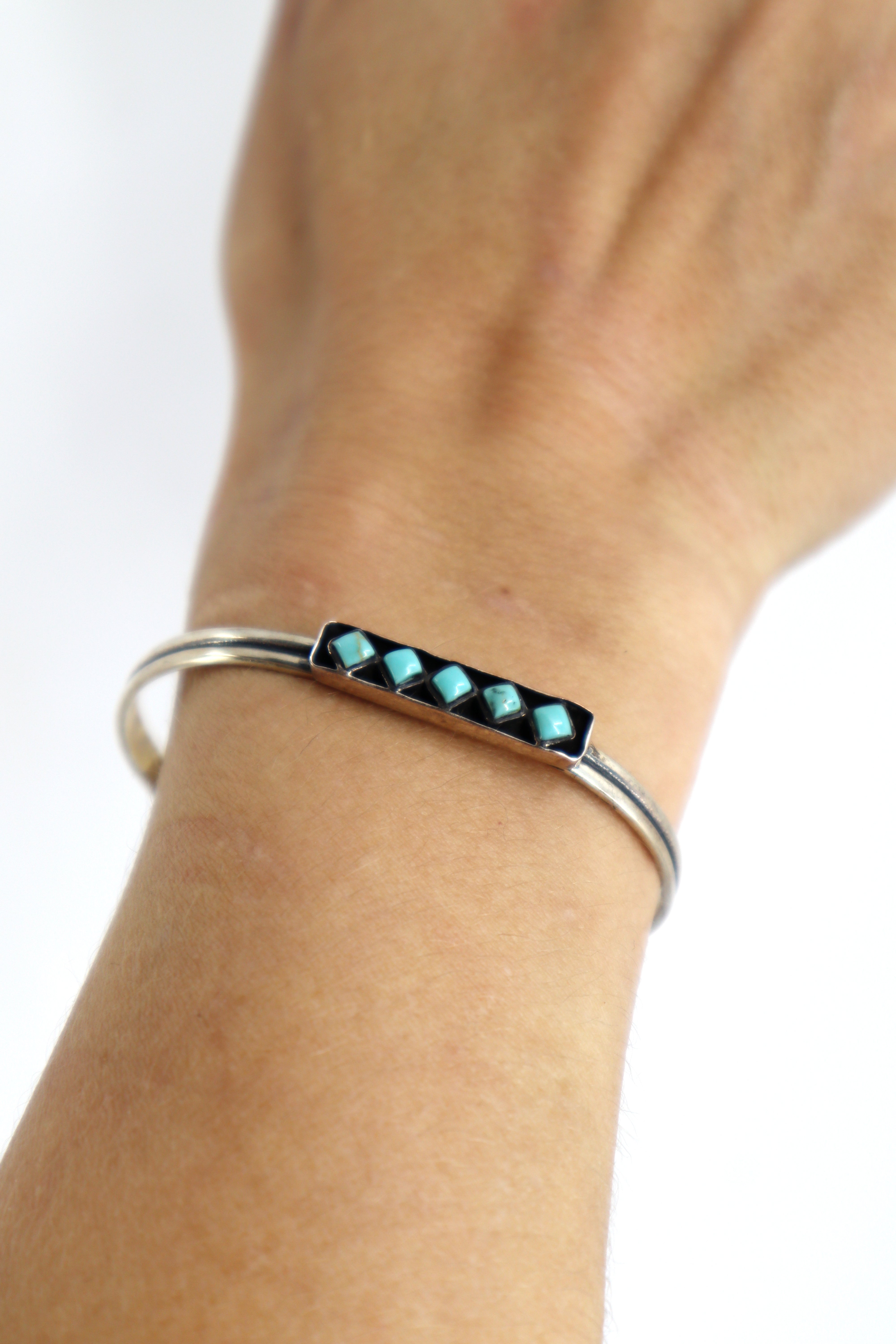 Handmade Sterling Silver Turquoise Diamonds Cuff Bracelet PSTPC06