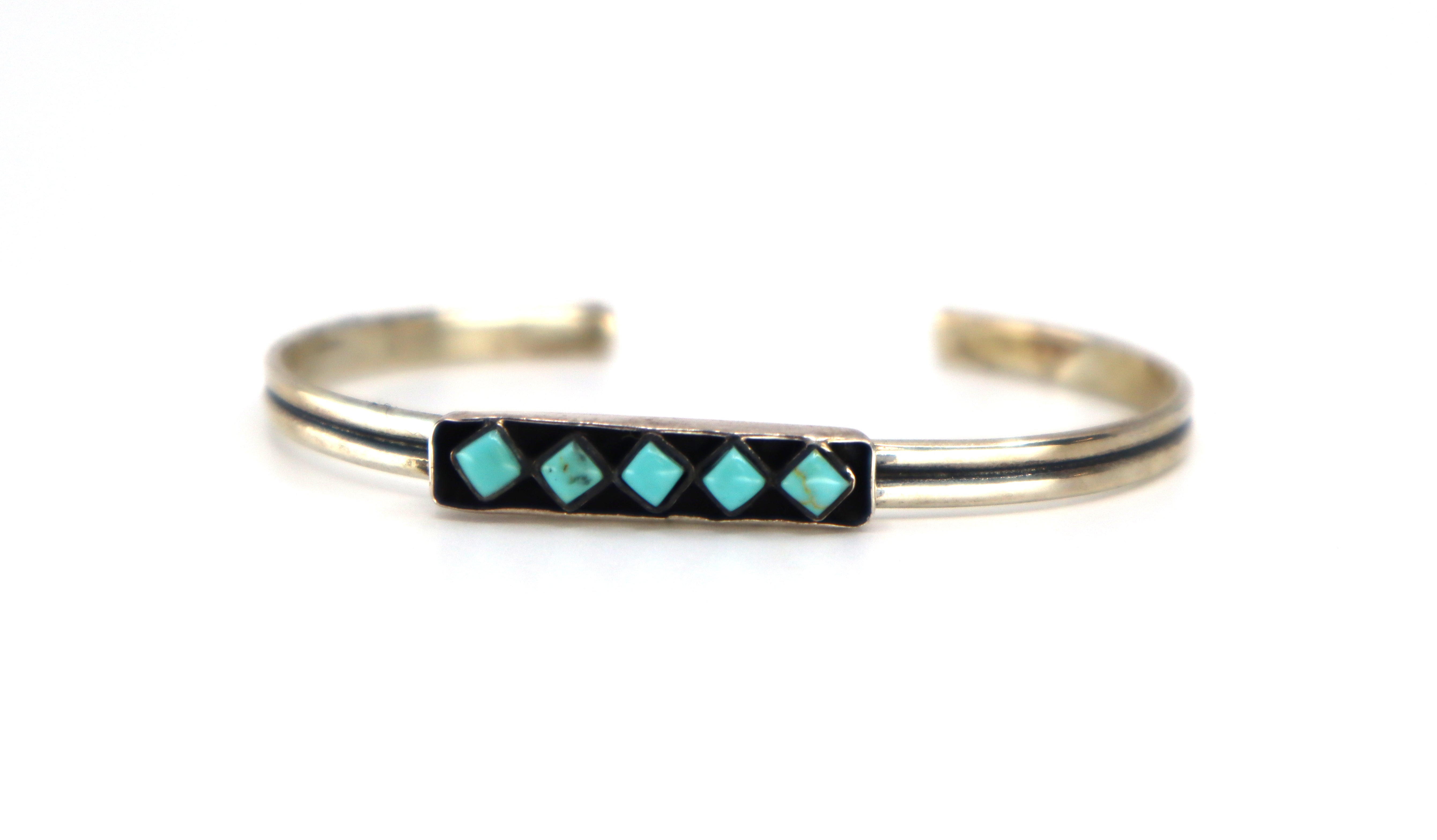 Handmade Sterling Silver Turquoise Diamonds Cuff Bracelet