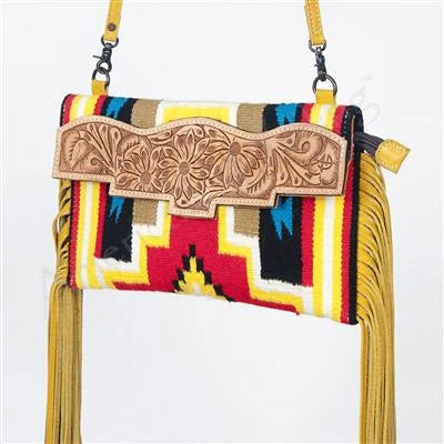 A hand weaved woolen saddle blanket gives the bag a western traditional yet trendy and elegant look.It has inside pockets to organize your stuff..