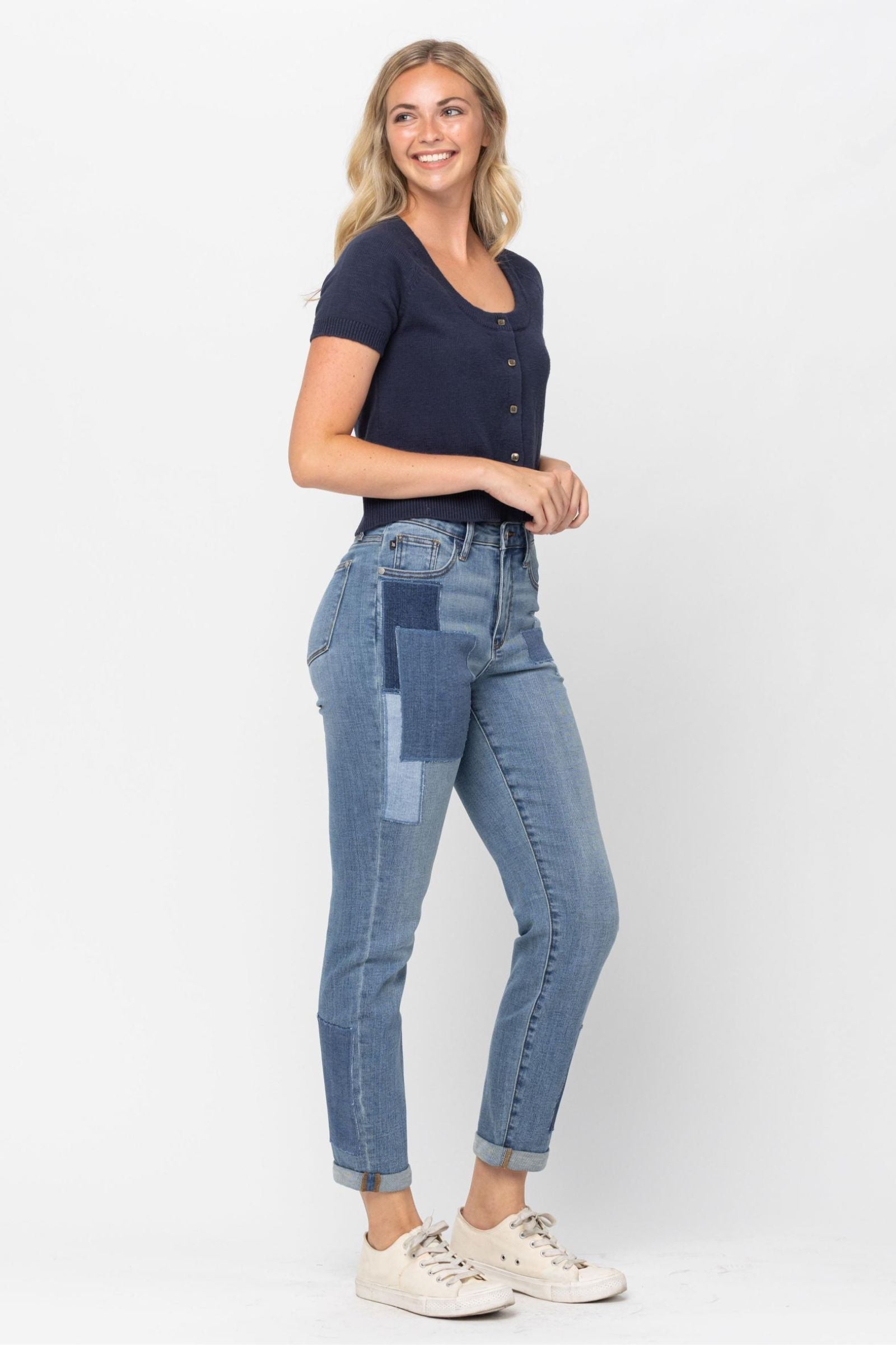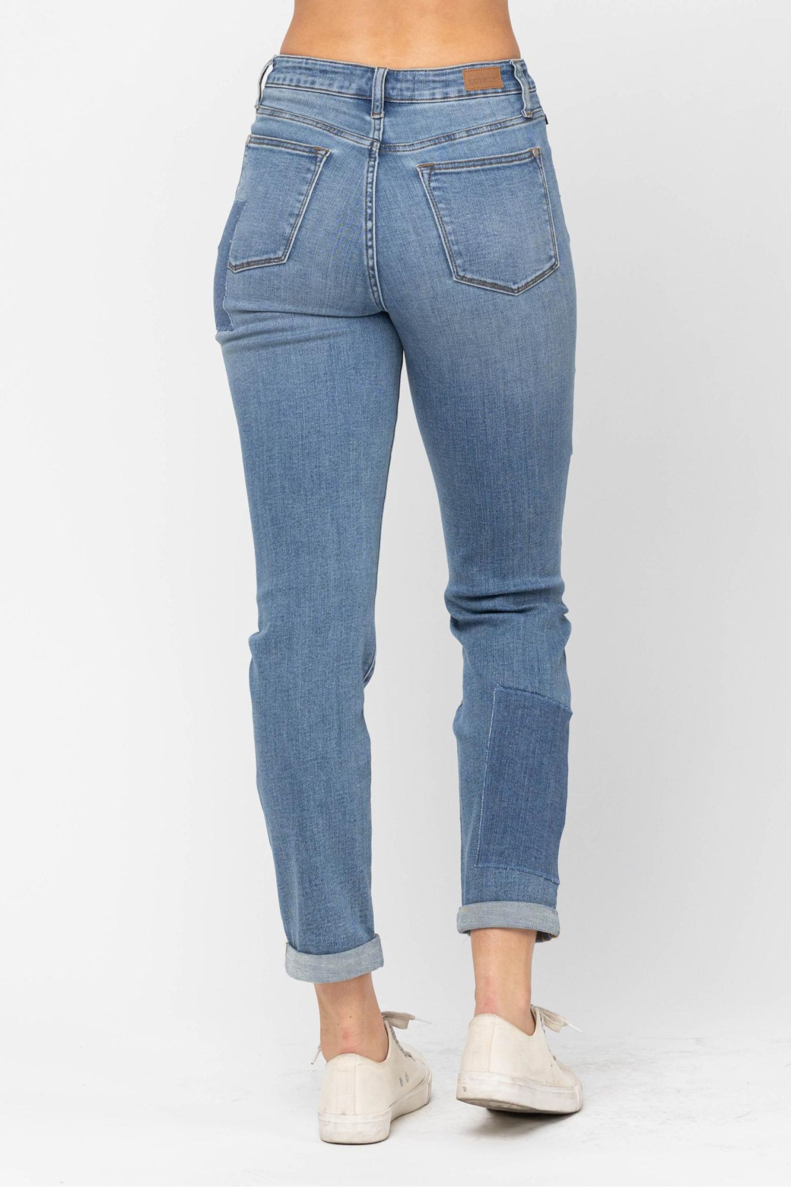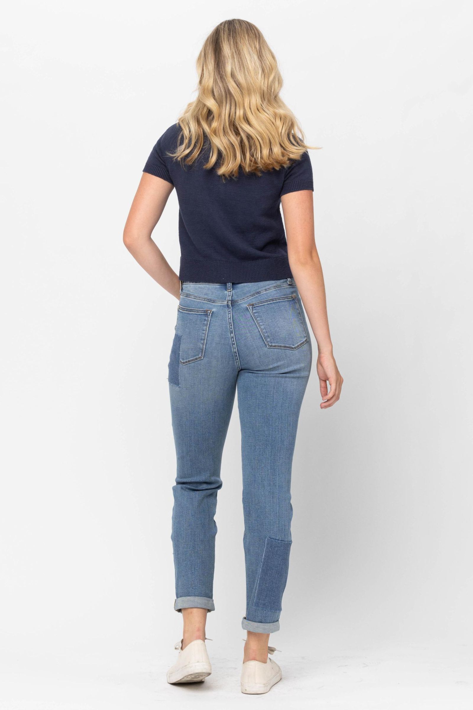 HIGH WAIST DOUBLE ROLLED CUFF PATCH BOYFRIEND