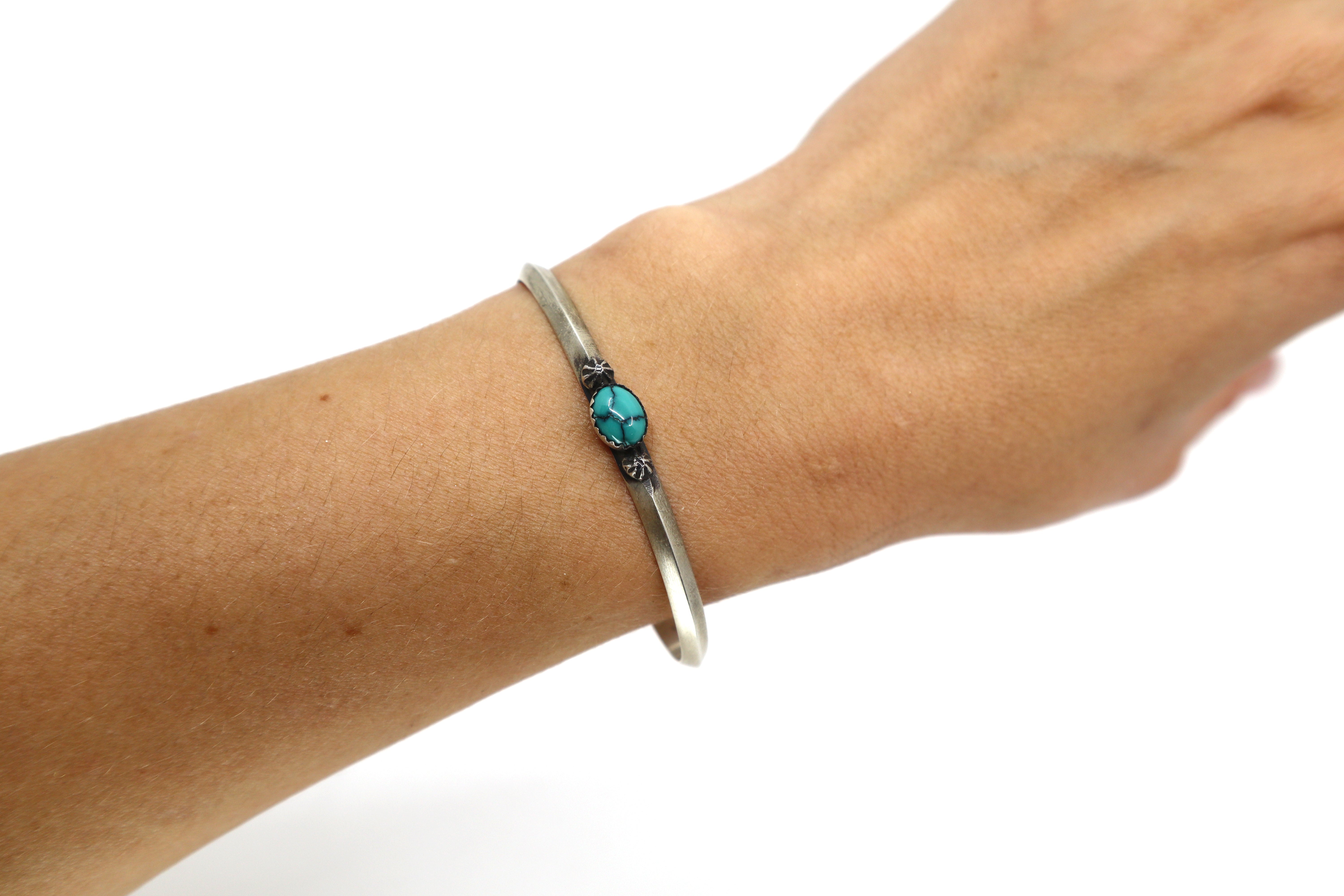 Handmade Navajo Sterling Turquoise Oval Cuff Bracelet PSTPC05