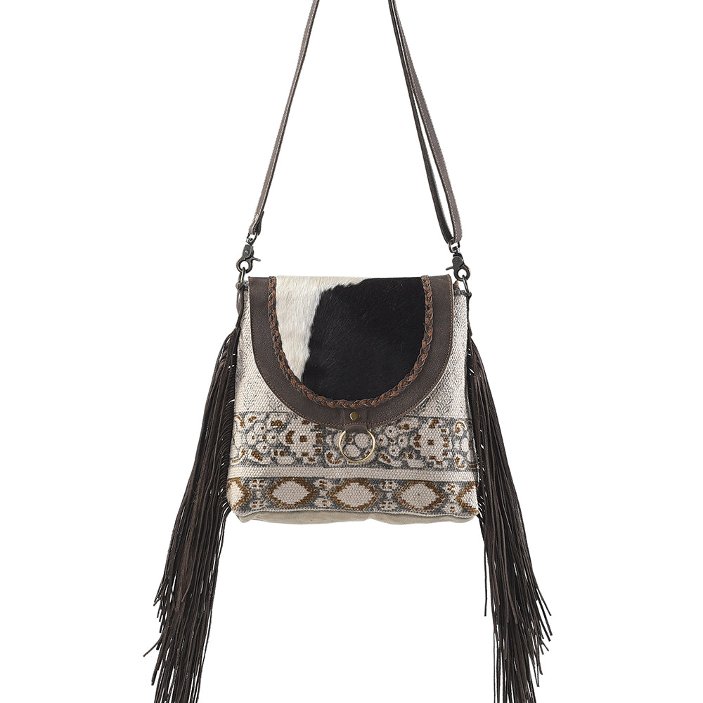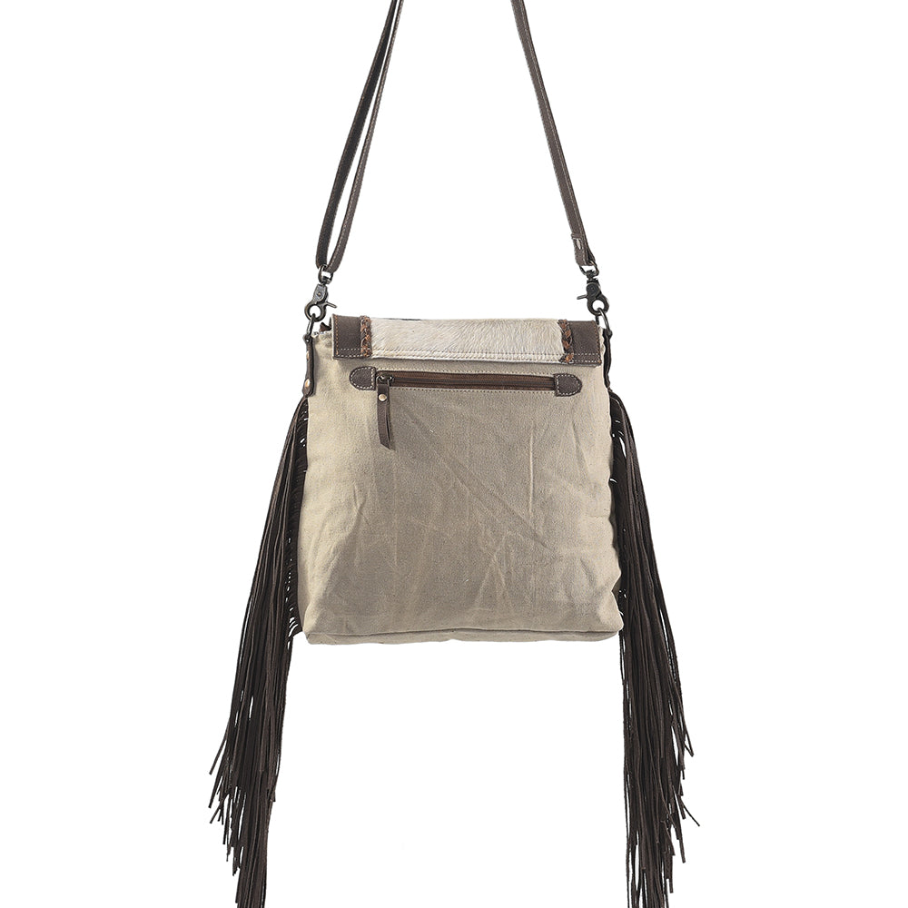 Real Cowhide Leather and Upcycled Canvas Ladies Bag 14 x 11
