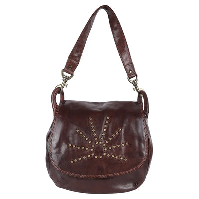 Spaghetti Western Crossbody Messenger Bag SWC156BRN, handcrafted leather design.