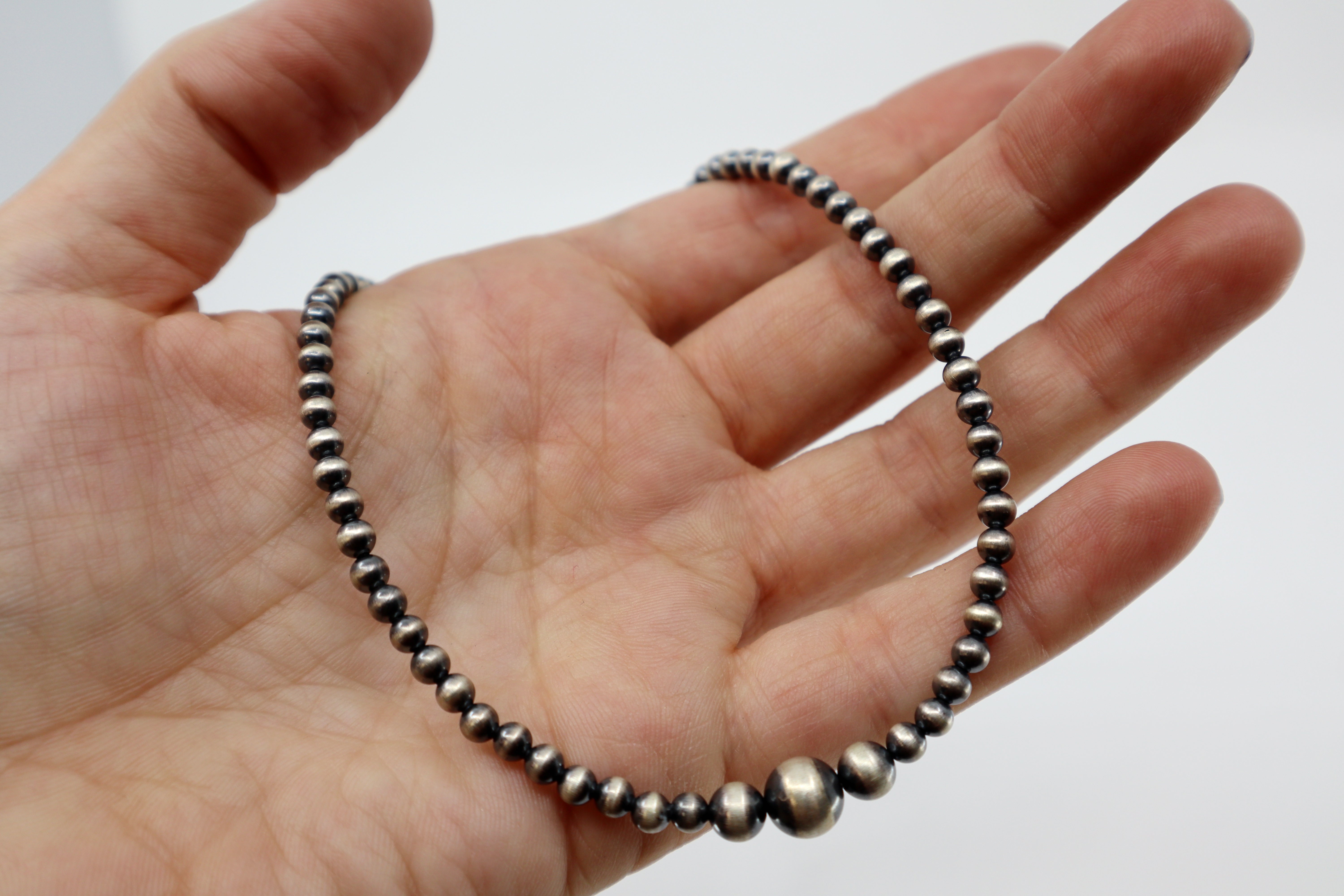 Handmade Sterling Silver Navajo Pearl Style Necklace PSTPN12B