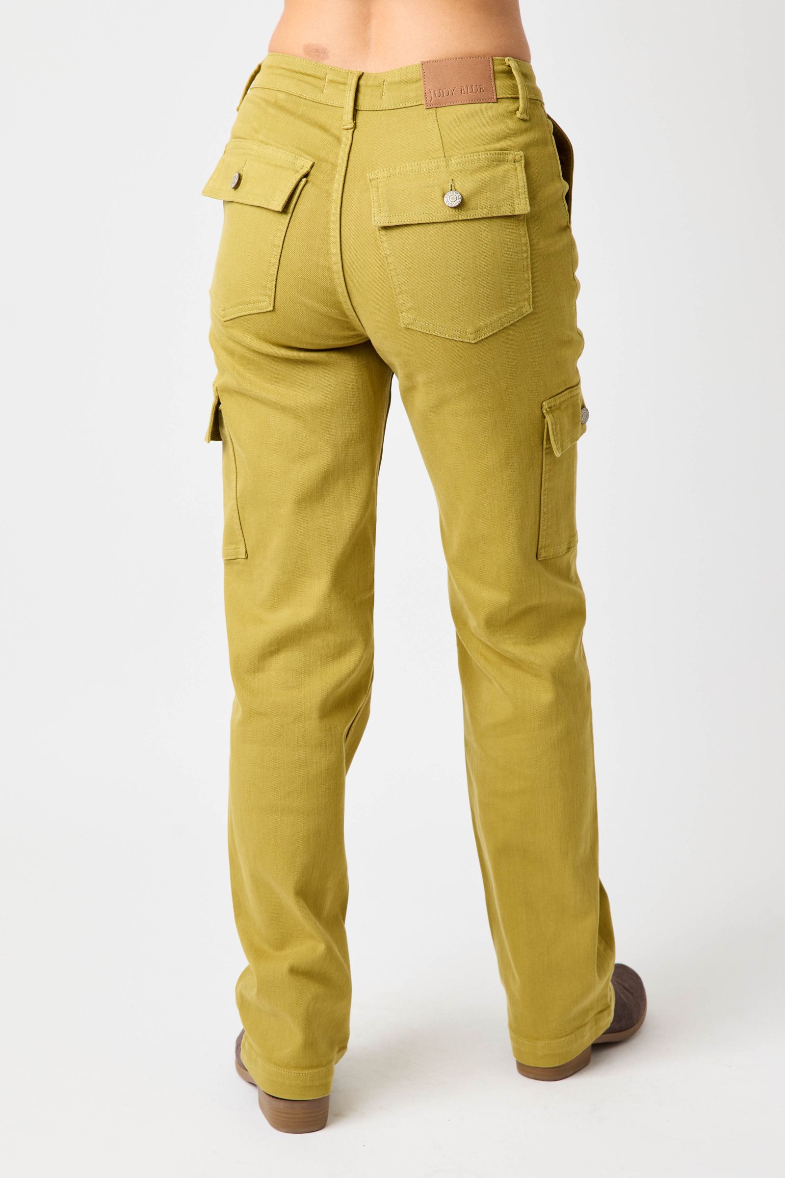 HIGH WAISTED GARMENT DYED STRAIGHT CARGO PANTS