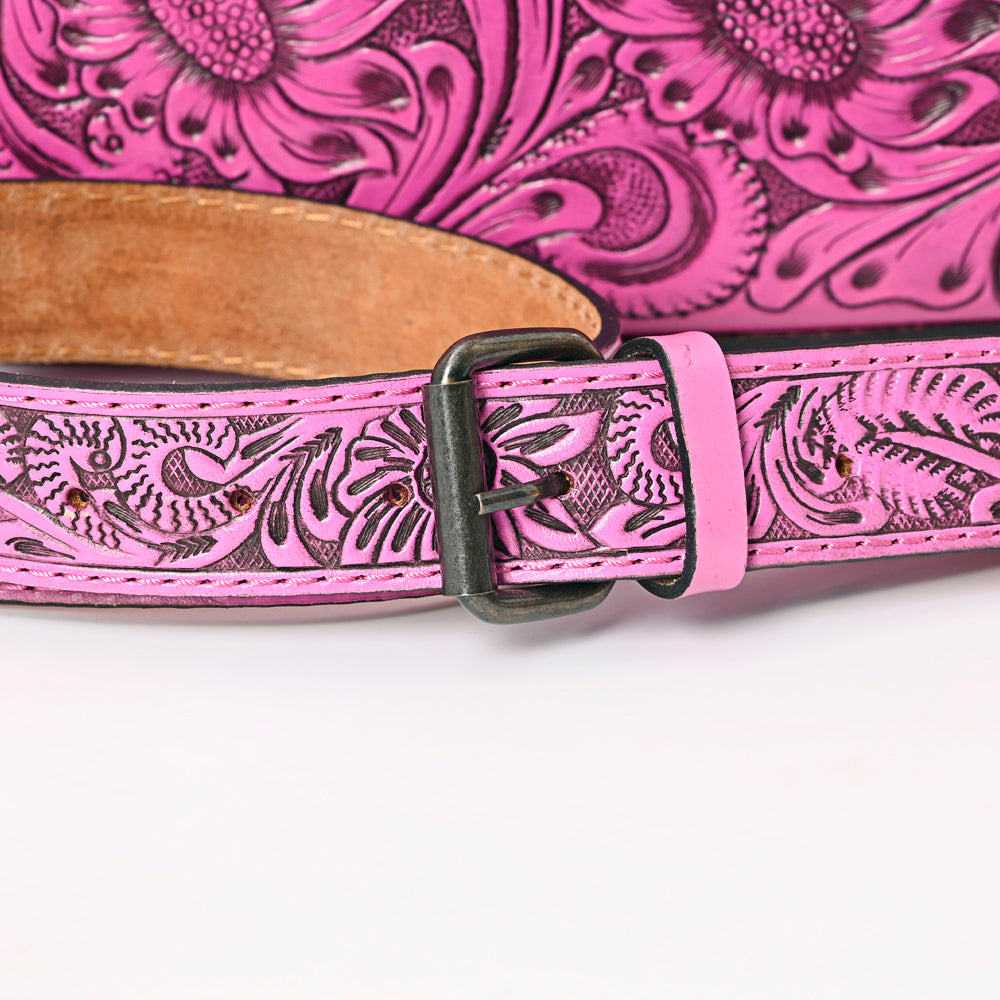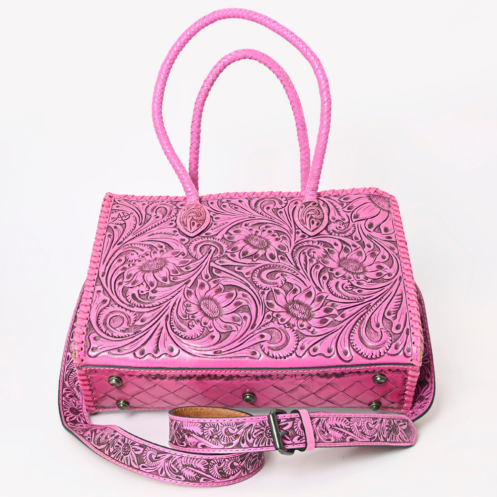 Detailed Hand tooled, carved and finally antique hand finished vegetable tanned American Cowhide Leather, exquisitely done by the finest artists and craftsmen in the country.High quality Genuine Full Grain Leather. Soft and supple leather that ages beautifully as it wears. The shoulder strap is adjustable and made of 100% genuine vegetable tanned Cowhide Leather with a hand tooled pattern. Highly durable solid Antique finish metal fittings. Genuine YKK brand known for long lasting and durable zipper closures ensure security of your essentials. Beautiful, detailed Leather Braiding. Size/Dimensions: 10in (H) X 14in (W) X 4.5in (D)A luxurious and western handcrafted leather collection designed by American Darling here in the heart of Texas. These gorgeous creations deliver a blend of western culture and heritage along with the latest fashion and trendy appeal. It makes your appearance eye-catching by its amazing colors, materials, and meticulous hand work. Eco friendly genuine leather is handpicked and sourced from some of the best tanneries in the world. The bag is made by highly experienced and skilled craftsmen of the industry using the highest quality standard of production.