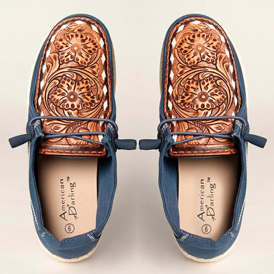 American Darling Carved Buck Stitch Leather Topper Blue Loafer ADFT133NV4