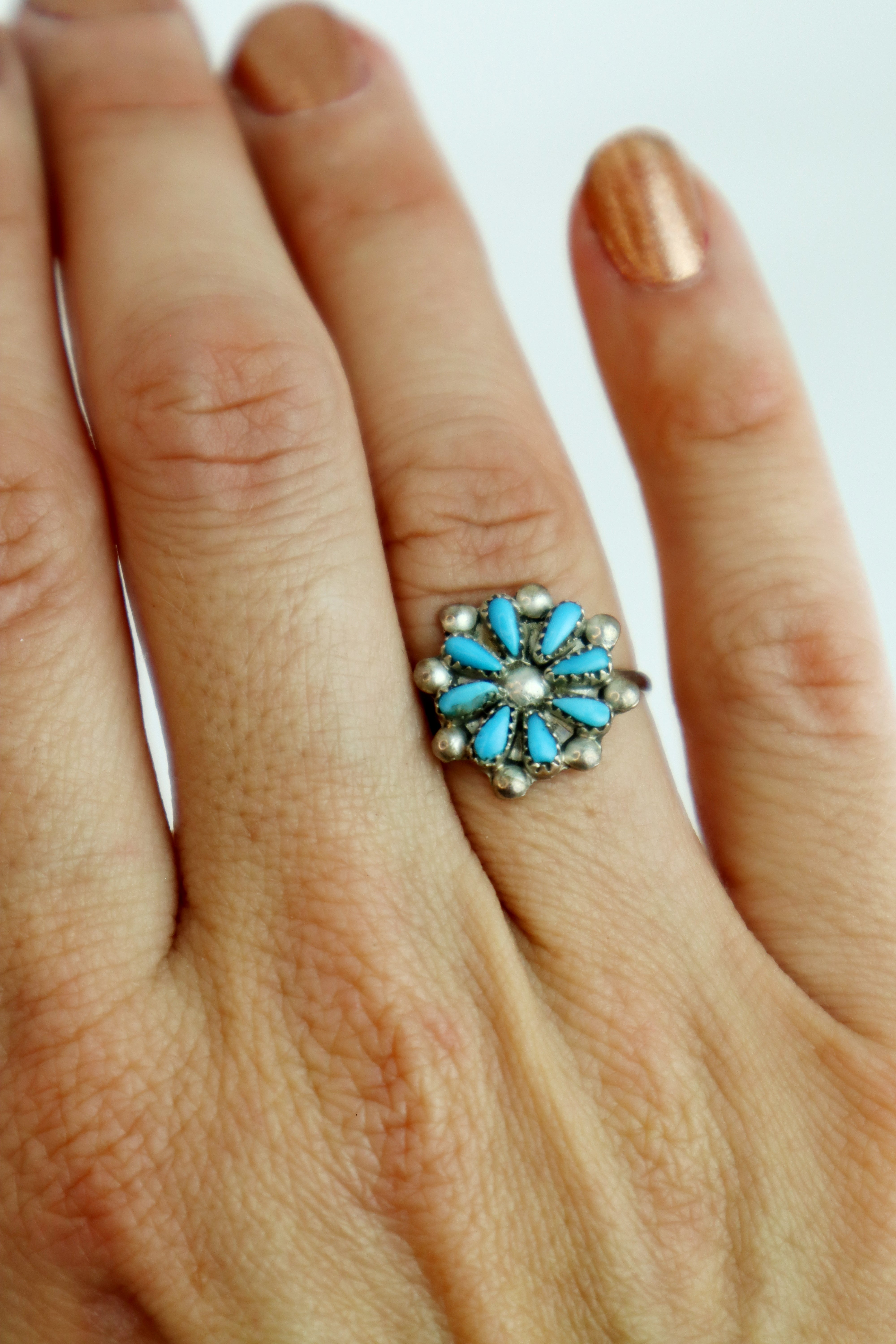 Handmade Navajo Sterling Silver Turquoise Daisy Ring