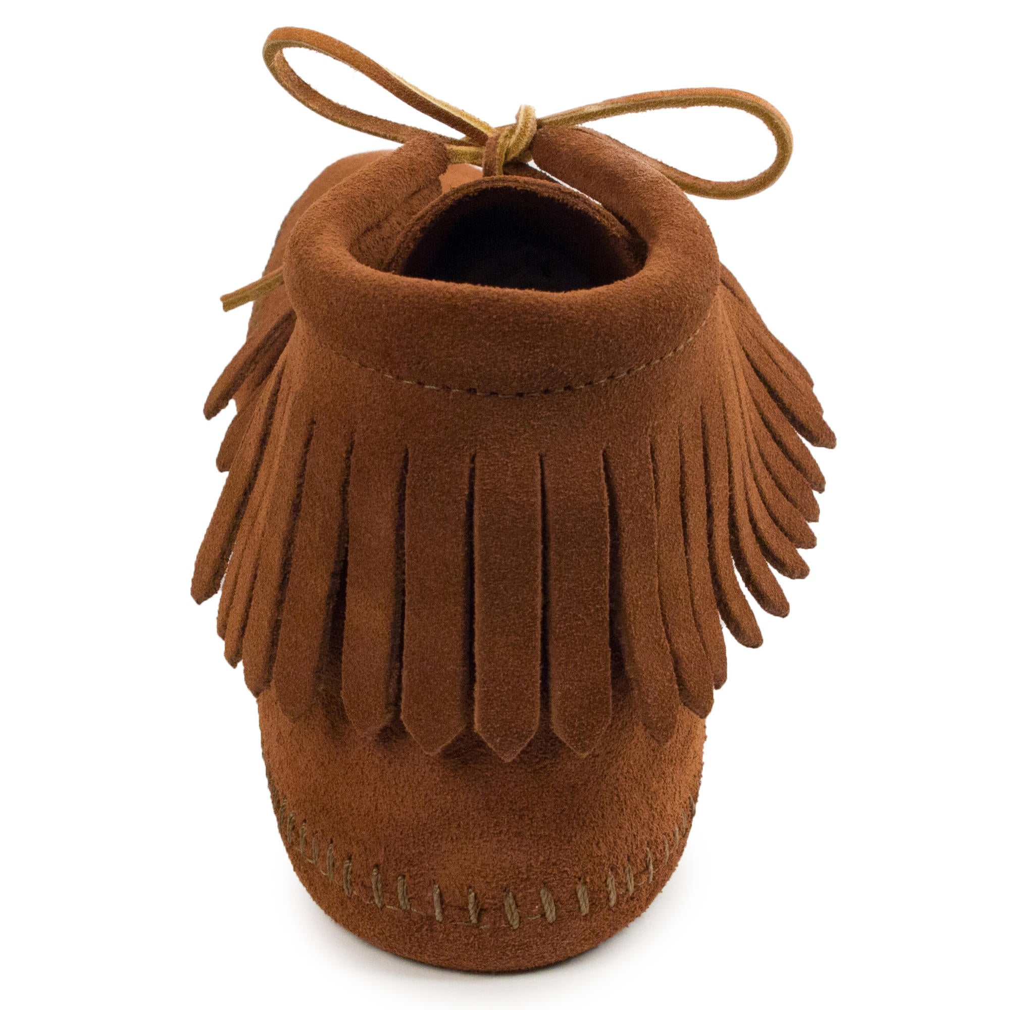 The Classic Fringe Boot combines comfort, durability, and a touch of stylish flair. Made from soft suede, these boots feature a rawhide lace and a padded insole for maximum comfort. The added fringe detail on the boot provides a unique, traditional look that pairs perfectly with casual and outdoor outfits.