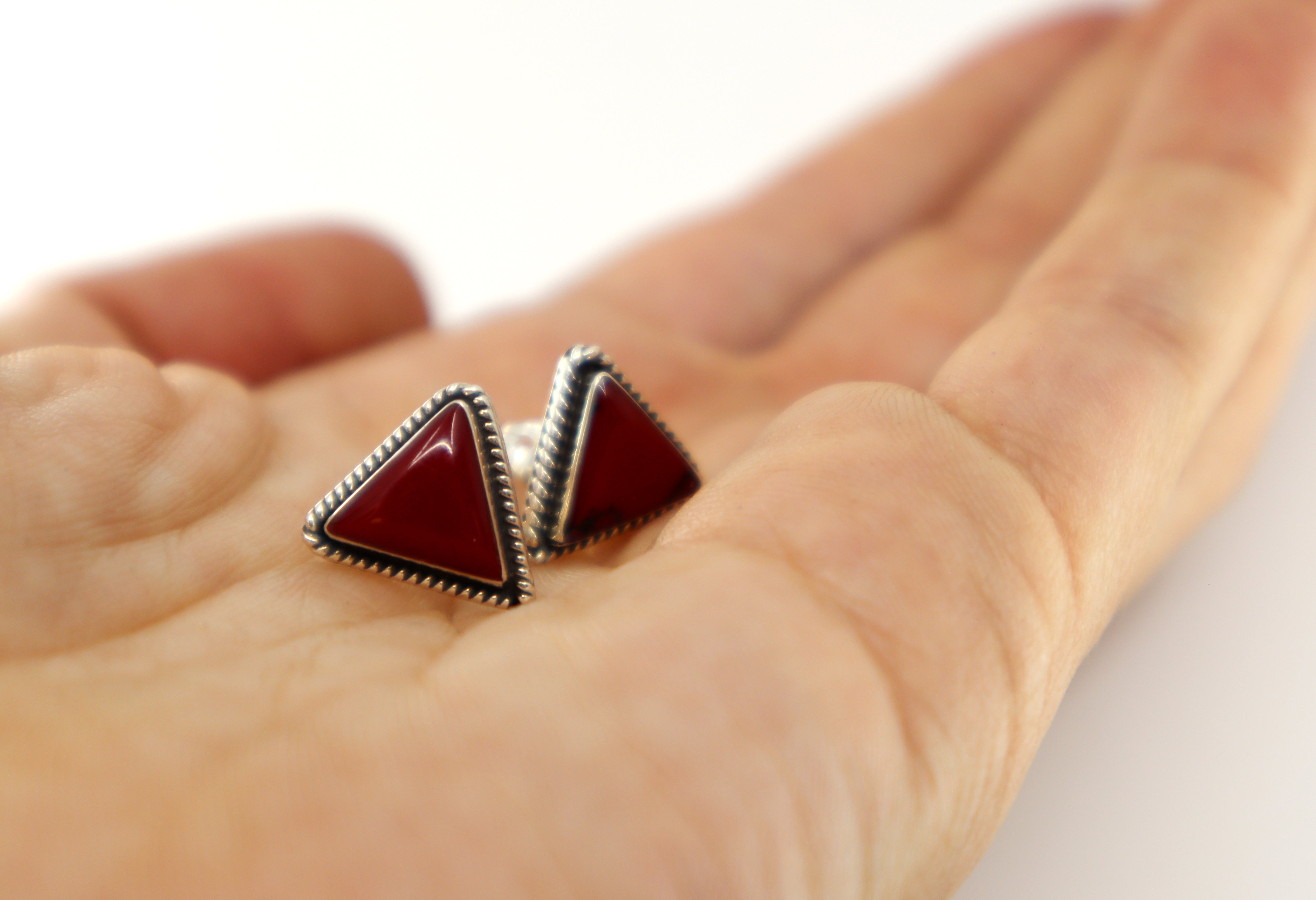 Handmade Sterling Silver & Jasper Triangle Stud Earrings
