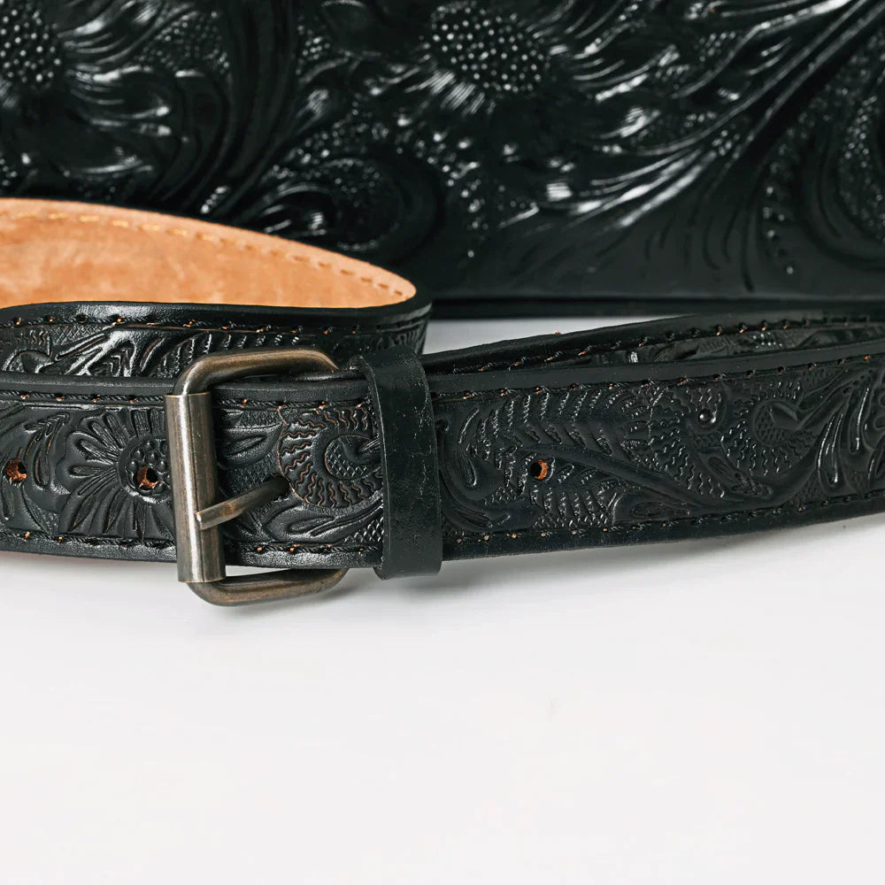 Detailed Hand tooled, carved and finally antique hand finished vegetable tanned American Cowhide Leather, exquisitely done by the finest artists and craftsmen in the country. High quality Genuine Full Grain Leather. Soft and supple leather that ages beautifully as it wears. The shoulder strap is adjustable and made of 100% genuine vegetable tanned Cowhide Leather with a hand tooled pattern. Highly durable solid Antique finish metal fittings. Genuine YKK brand known for long lasting and durable zipper closures ensure security of your essentials. Beautiful, detailed Leather Braiding. Size/Dimensions: 10in (H) X 14in (W) X 4.5in (D)A luxurious and western handcrafted leather collection designed by American Darling here in the heart of Texas. These gorgeous creations deliver a blend of western culture and heritage along with the latest fashion and trendy appeal. It makes your appearance eye-catching by its amazing colors, materials, and meticulous hand work. Eco friendly genuine leather is handpicked and sourced from some of the best tanneries in the world. The bag is made by highly experienced and skilled craftsmen of the industry using the highest quality standard of production.