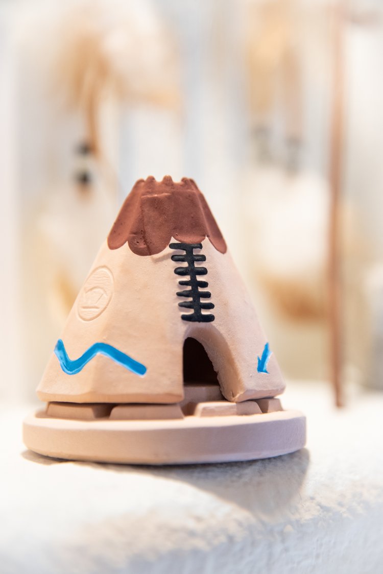 Handcrafted teepee incense burner with traditional design and piñon incense bricks, creating a calming Southwestern aroma.